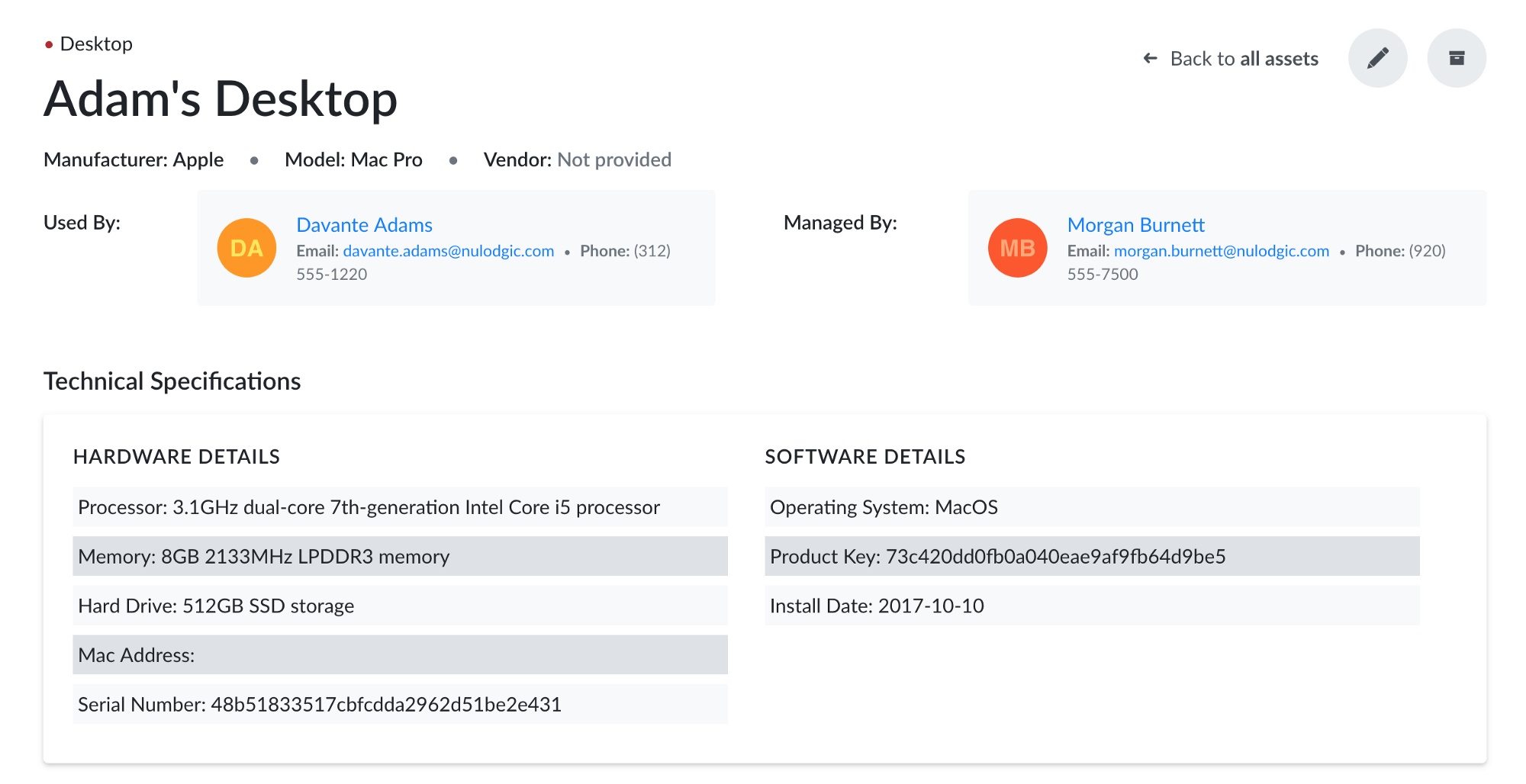 Have a record of every asset your businesses has invested in. See location, warranty, and user at a glance. Get automatic alerts when warranties are expiring to take action. Having visibility of your system gives you the opportunity to protect your investments, and save you time and money.